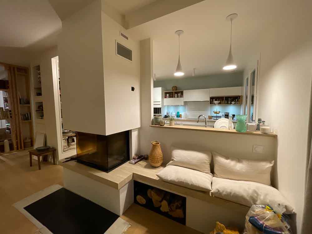 des zones de confidentialité. La cheminée délimite les espaces de vie.
