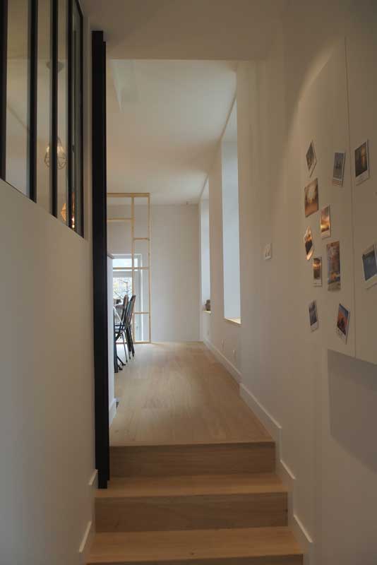 Une redistribution pensée des espaces par de la fonctionnalité et l’optimisation. A l’intérieur, l’ambiance de style vintage qui amène au passé, est studieuse, structuré et agencé pour créer de large espace ergonomique. Le mélange des matériaux et les couleurs clairs et pastel procurent charme et authenticité.
